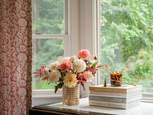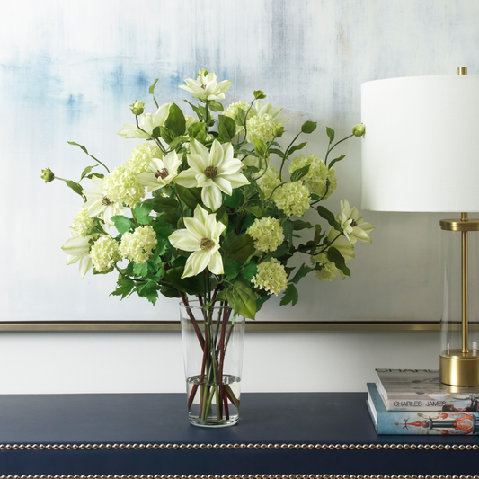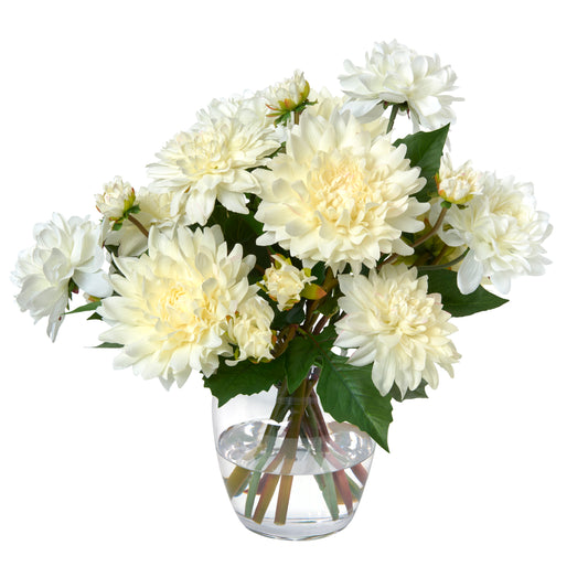 Cream Dahlias in Glass Vase